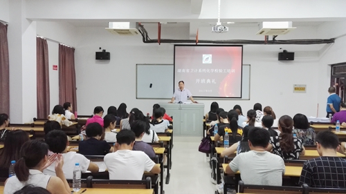 9月25日上午,湖南省卫生计生系统化学检验工二期培训班在我校正式开班。成教培训处处长刘志峰主持开班典礼。