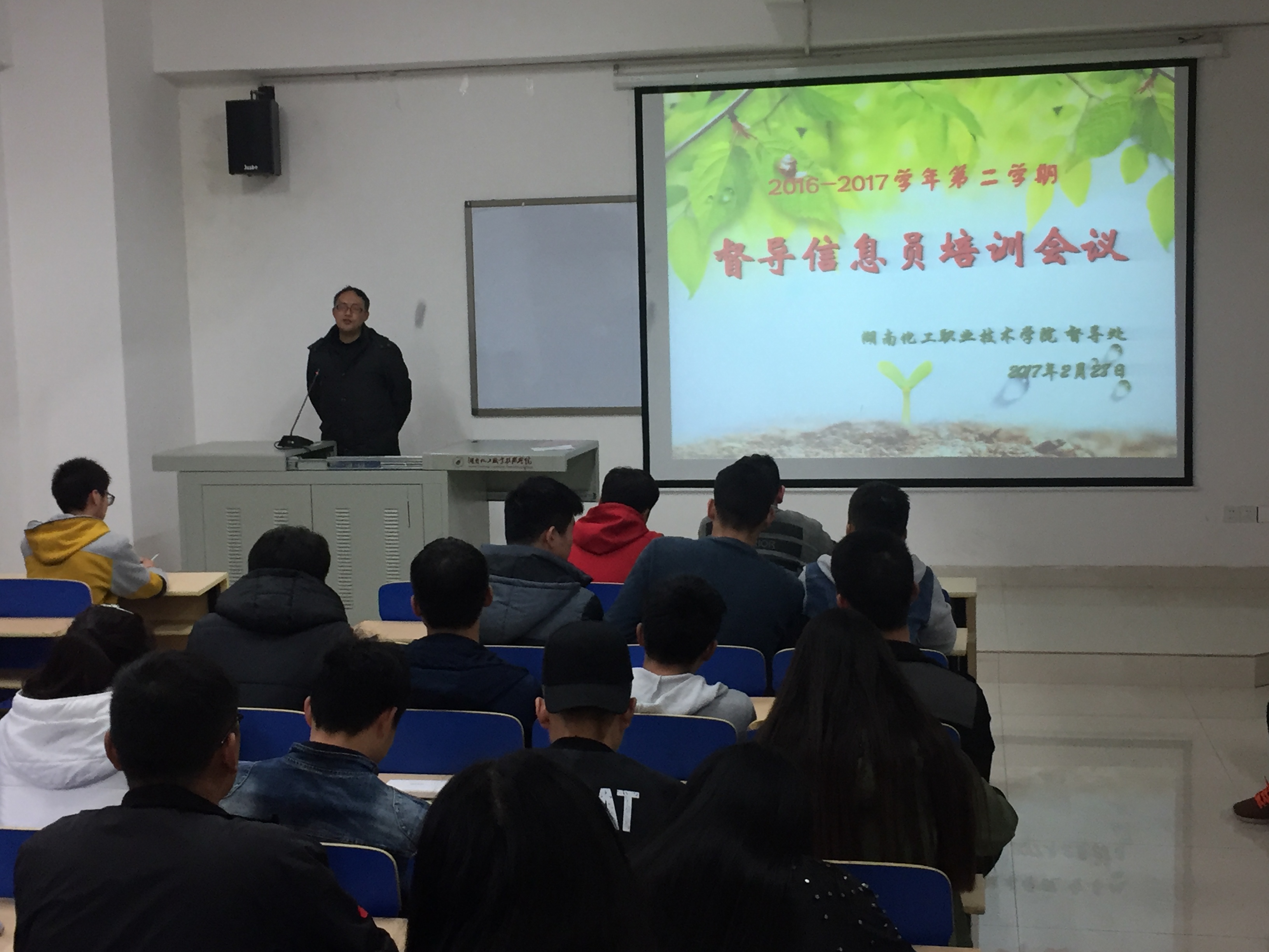 2月28日下午,督导处在化工制药楼115教室召开了督导信息员培训会议。督导处工作人员和各班班长、各二级学院纪检部长、学习部长参加了会议,督导处处长贺新元作培训讲话。