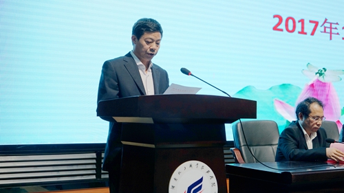 党委副书记刘毅宣读了学校2017年“老年节”表彰决定,并对卢海晏、林厚生、周玉君、沙醇熙、张南辉、李岳等六位年度“健康寿星”进行了表彰。