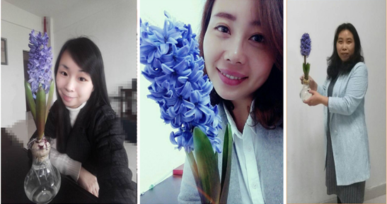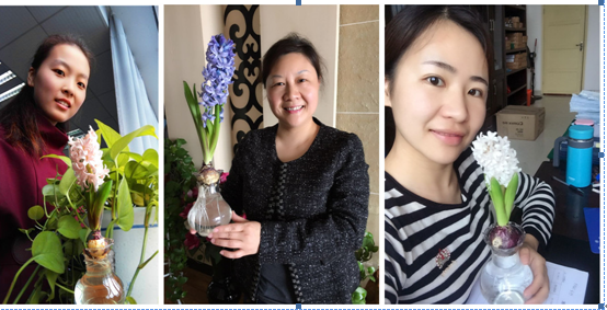 阳春三月,为顺利举办风信子花卉种植大赛,院工会统一购买了花种、营养液、花瓶等,并一一分发给了学院每一位女教职工和分工会主席。对于此次花卉种植大赛,老师们都表露出极高的热情,在领到花种后,大家纷纷按照培育要求认真处理种球——消毒除菌,清理腐皮,根部遮光,一步一步毫不含糊。在种植期间,很多老师还会定期分享风信子的成长照和种植心得等等。经过一个多月的精心呵护,200多株,近10个品种的风信子,大部分都竞相开放。那一朵朵锦簇的花儿,就像精灵的眼睛一般,美丽无暇,挺立的一片片绿叶,就像兔耳朵一样迷人可爱。为更好的展现风信子的魅力,许多老师用文字以及图片记录了育花的全过程,并将其制成了精美的PPT,写下自己的深刻感悟。