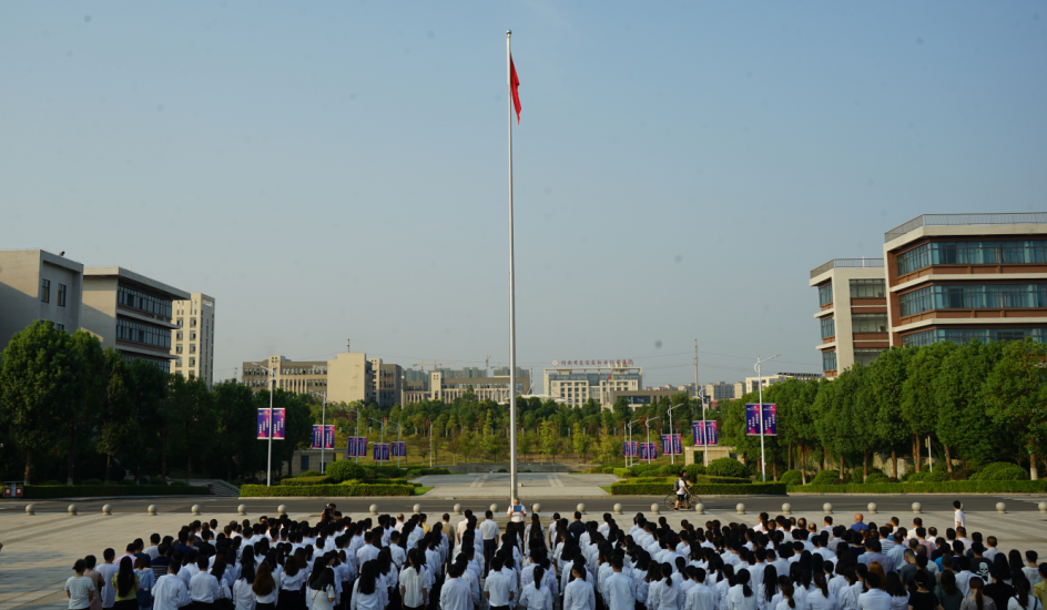 成材不负青云志,报国胸怀赤子心。我校学子在国旗的辉映下、朝阳的光辉中,立志在习近平新时代中国特色社会主义思想的引领下,为学校发展贡献自己的力量,以优异成绩向新中国成立七十周年献礼,用青春谱写祖国的绚丽华章。