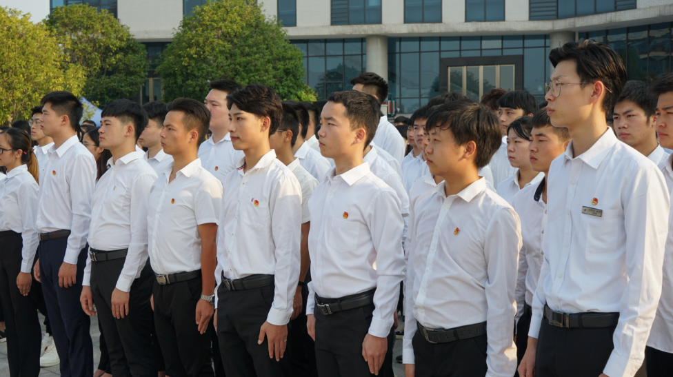 伴随着雄壮激昂的《中华人民共和国国歌》,鲜艳的五星红旗冉冉升起,全体人员齐唱国歌,行注目礼。升旗仪式结束后,三百余名学子满怀热忱,用肺腑之声作《青春告白》:“我们化院学子,以青春的名义,向伟大的党,伟大的祖国,伟大的时代深情告白、庄严宣誓:新思想,我们学深悟透;新时代,我们重任在肩;新征程,我们昂扬奋进;新使命,我们勇于担当。树牢‘四个意识’,坚定‘四个自信’,做好‘两个维护’,誓做‘中华脊梁’。伟大的党,我们永远跟您走!伟大的祖国,我们永远热爱您!伟大的时代,我们永远向前进!”