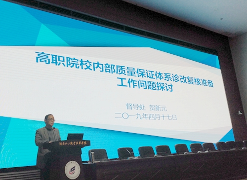 督导处处长贺新元副教授对诊改复核工作进行了政策解读和具体工作部署,并从诊改复核目的和诊改任务、“55821”工程、专业课程教师诊改案例分析三个方面进行了培训交流。