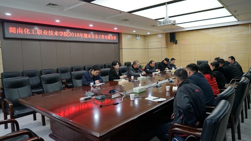 随后,学校在行政楼三楼会议室召开2018年期末安全工作专题会议。刘望在会上传达了省教育厅《关于切实做好今冬明春火灾防控工作的预警通知》精神,要求各单位、各部门落实省教育厅《关于做好岁末年初学校安全工作的通知》要求,每个部门、每个岗位要严格履职,特别注意加强用火用电安全管理工作。刘望强调,要发挥党员干部先锋模范作用,加强安全检查督导和安全宣传教育,努力为全校师生的学习和生活提供更为有力的安全保障。