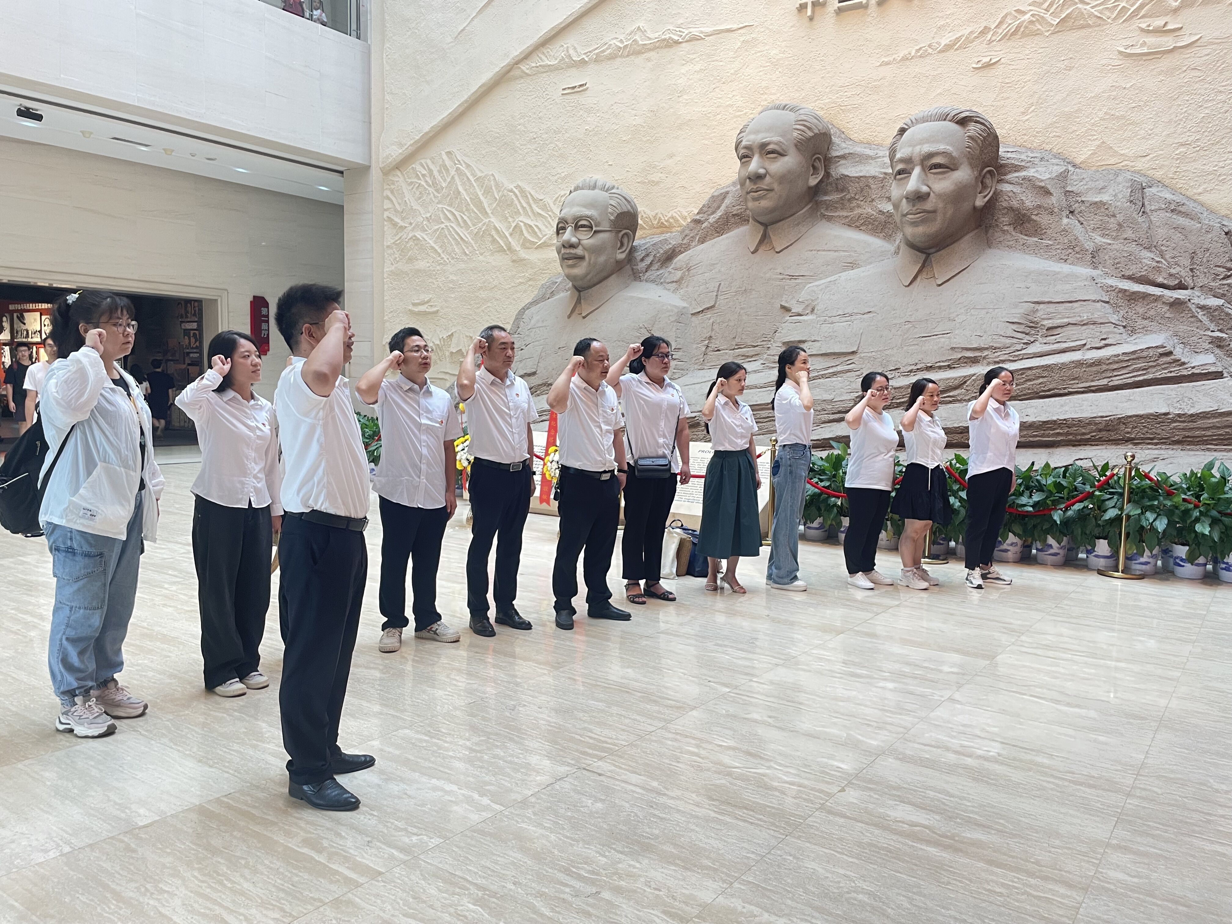党课结束后,大家乘车前往湖南党史陈列馆和湖南雷锋纪念馆。在湖南党史陈列馆展厅内,全体教师党员面向鲜红党旗,重温入党誓词。随后,大家怀着庄严而崇敬的心情,跟随讲解员参观展览。通过游览馆内展陈的560多个湖南党史事件和480多位党史人物,大家深入了解了中共湖南地方组织的发展历程,湖南党史人物的光辉业绩,感受到党的百余年发展历程中湖南革命先辈的光辉事迹,也激励着全体教师党员一定要铭记红色历史,传承红色基因,传播红色文化,自觉弘扬伟大建党精神。