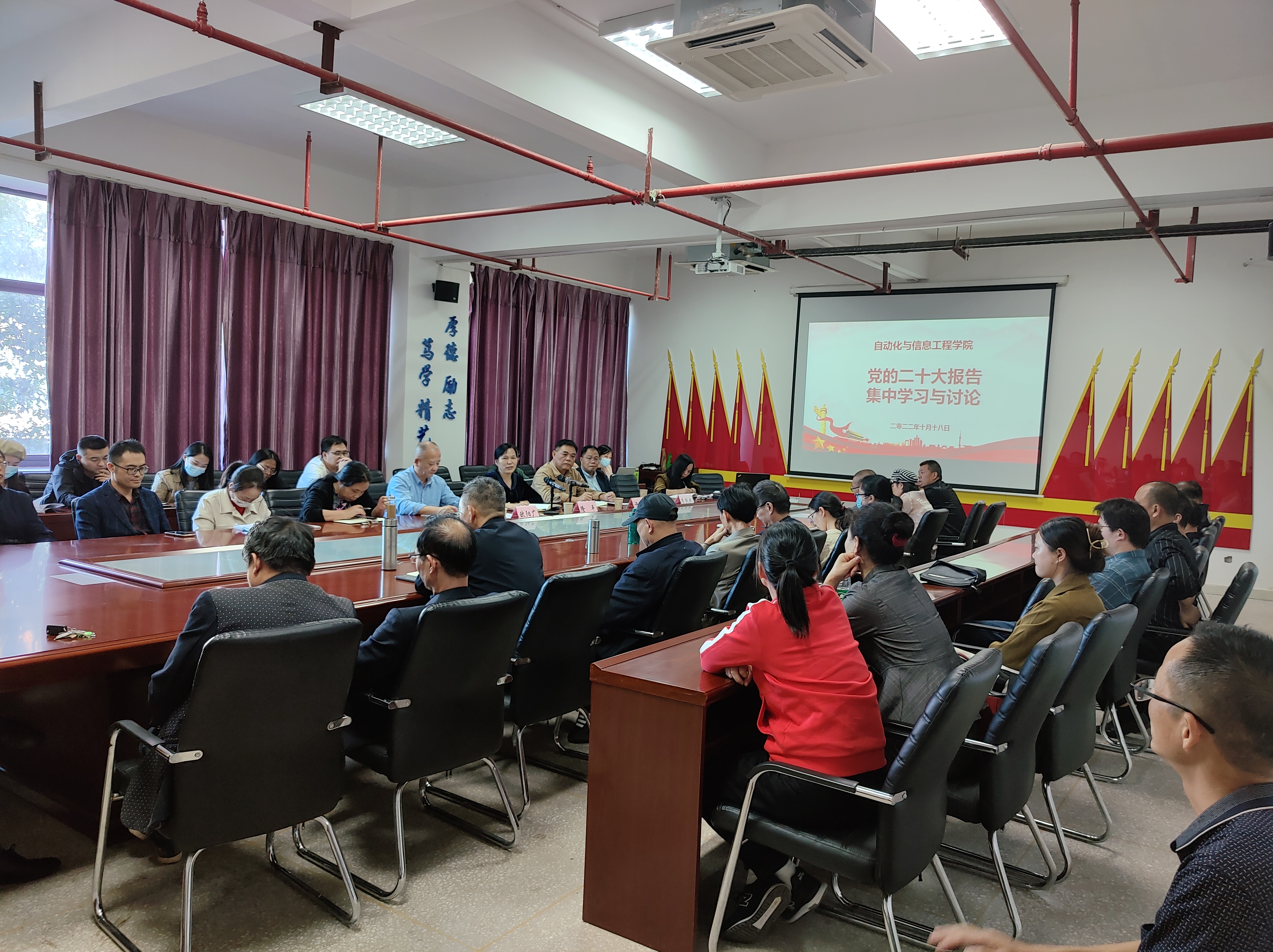 10月18日下午,自动化与信息工程学院在笃学楼207会议室开展党的二十大报告集中学习与讨论活动。校长隆平、马克思主义学院党总支书记李纯斌出席本次活动,自信学院党总支书记许建平主持本次活动。