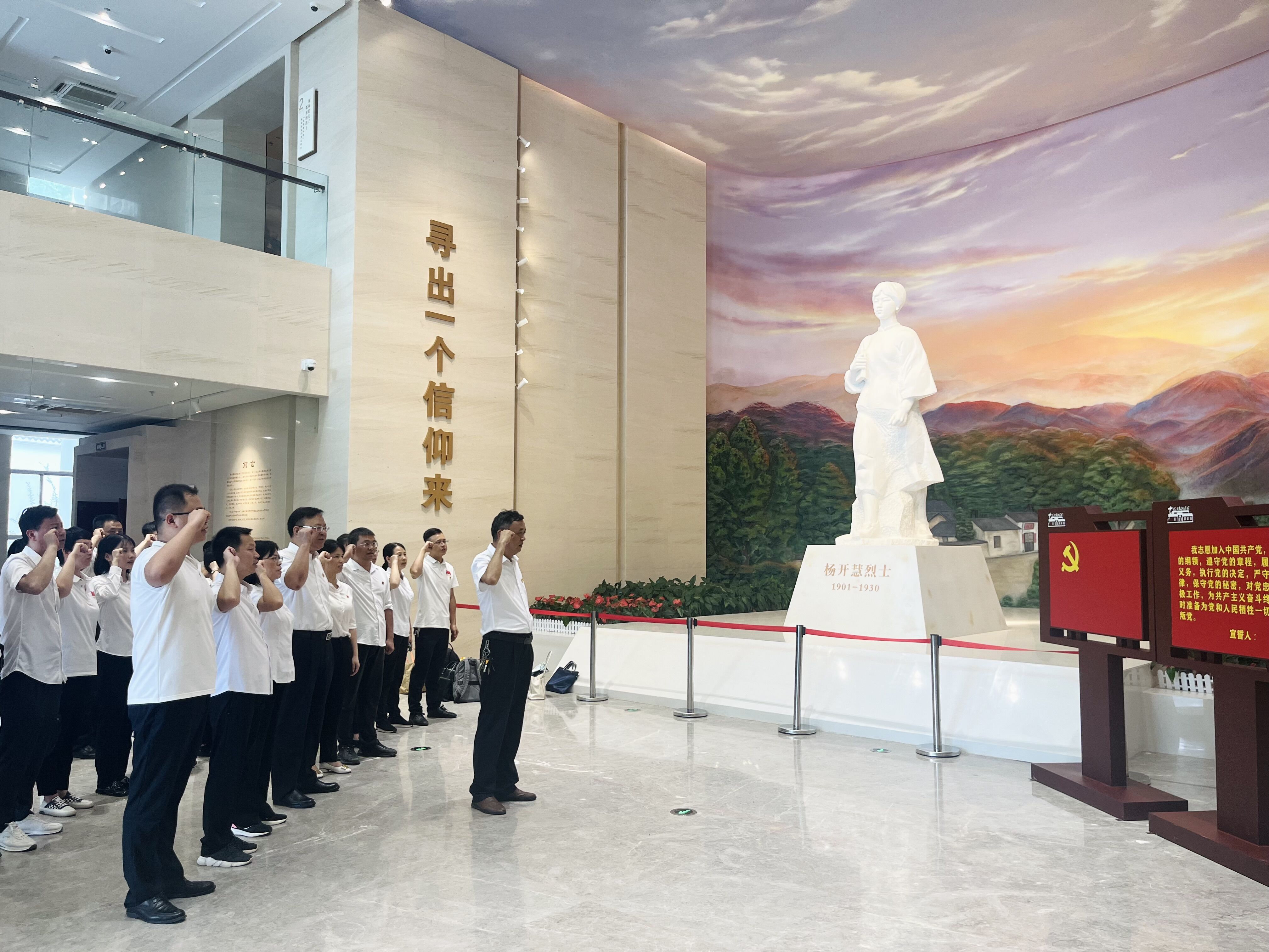 在杨开慧纪念馆展厅内,陈超一行面向鲜红的党旗,重温入党誓词,表达了永远忠于党、永远跟党走的坚定信仰,进一步凝聚了党员干部干事创业正能量。
