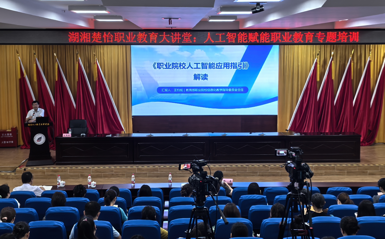 信息化教学指导委员会指导的《人工智能赋能职业教育》专题培训在学校图书馆一楼报告厅拉开帷幕。