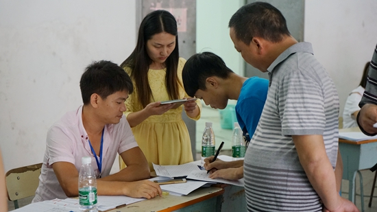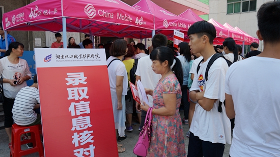 贴心服务让新生体验一站式报到的便捷,新生和家长仔细核对录取信息