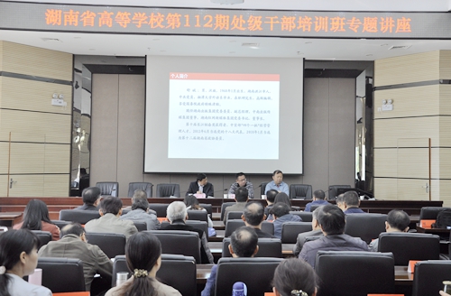 10月27日上午,湖南红网新媒体集团党委书记、董事长舒斌来到我校,以“让互联网这个‘最大变量’成为事业发展的‘最大增量’”为题,为湖南省高校第112期处级干部培训班作专题讲座。株洲市委网信办主任邓天日、红网株洲站站长王兴夏、学校党委书记刘望教授、党委副书记刘毅教授等出席了讲座。刘望主持讲座并讲话。