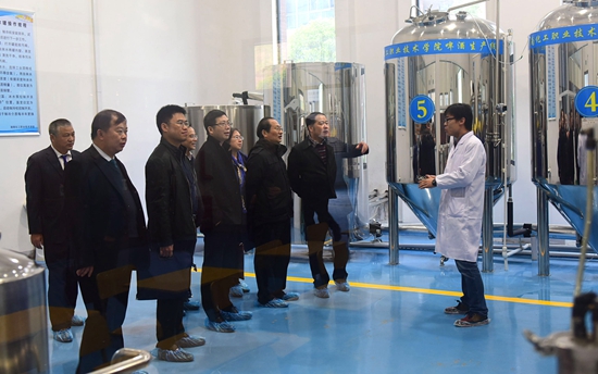 专家组一行抵达学校后,在学校党委书记刘望、校长王雄伟等学校领导陪同下,实地查看了校史馆、示范校建设成果展厅、啤酒生产车间、GMP生产车间、化工综合生产车间、化工单元操作中心、分析检测中心、大学生创新创业中心等,随后在办公楼三楼会议室听取了学校工作汇报。学校全体校领导、相关部门中层干部参加了汇报会。