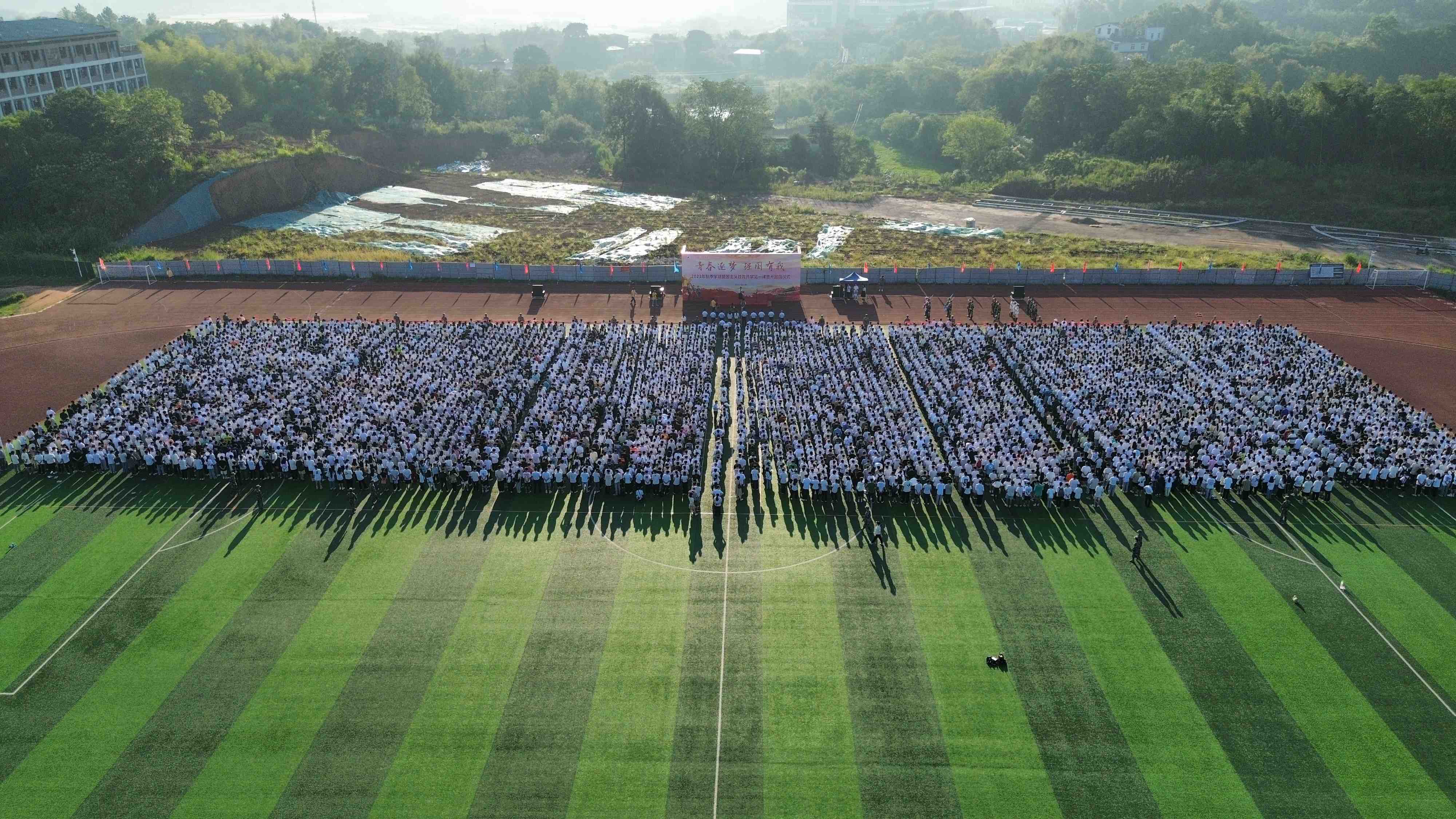 9月18日,迎着清晨的第一缕阳光,我校在田径场举行新学期新生升国旗仪式。全体党委委员、二级学院领导班子、各行政部门主要负责人、全体辅导员和2023级新生参加了升旗仪式。升旗仪式由学校副校长刘艳主持。