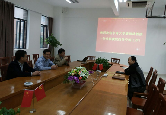 10月30日上午,中南大学博士生导师、教授,湖南省大型精密仪器测试学会理事会委员,湖南省水污染治理工程技术重点实验室客座研究员满瑞林一行三人来我校交流?;Чこ萄г涸撼ね狭?、副院长唐淑贞,教务处处长田伟军等就实习实训等工作与其进行了深入探讨和交流。