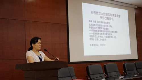 签约之后,我校举办了2017年教师信息化教学培训。在培训会上,北京蓝墨大数据研究院院长商桑为老师们作了一场以《用云教学大数据实现课堂教学与诊改智能化》为主题的手机互动体验式讲座。商桑教授分别从云教学的概念及特征、国家网络学习空间人人通政策及标准、教学工作诊改的主要政策解析、诊改的定位、意义及核心、课堂教学及诊改智能化措施、如何做好新时代大数据分析型教师等六个方面进行了详细讲解,并与参会教师现场演练、互动,形象生动讲解云教学对课堂教学模式的变革,会场学习气氛浓烈,互动交流频繁,掌声、称赞声不断。