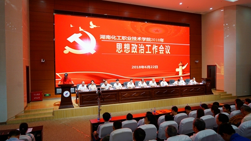 6月22日,我校在图书馆二楼报告厅召开2018年思想政治工作会议。学校党委书记刘望,校长王雄伟,党委副书记刘毅,纪委书记肖耀南,副校长易卫国、隆平、王为、童孟良、胡颖蔓,党委委员、组织部长张麦秋,党委委员、宣传统战部长阳良明,科级以上干部、党支部书记、思政课教师、党群部门全体教职工、辅导员、班主任代表、教师代表及学生代表参加会议。刘毅主持会议。