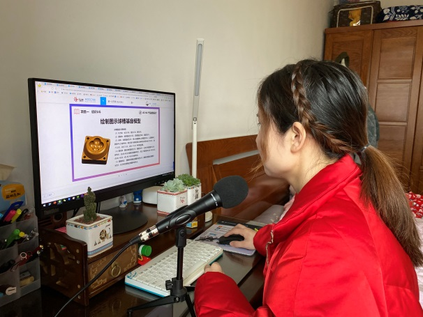 线上授课,面授变直播,对一线普通教师是一个大的挑战,尤其对已退休的谭大喜更是一件不容易的事。从2月4日开始,父女俩开始共同学习在线课程授课的技术,报名参加了“智慧职教”云课程远程教学培训,每天下午学习一小时,共12期。同时,谭倩《UG NX产品造型设计》省级在线课程也已在寒假完成录制,顺利开课,面向全社会学习者开放。