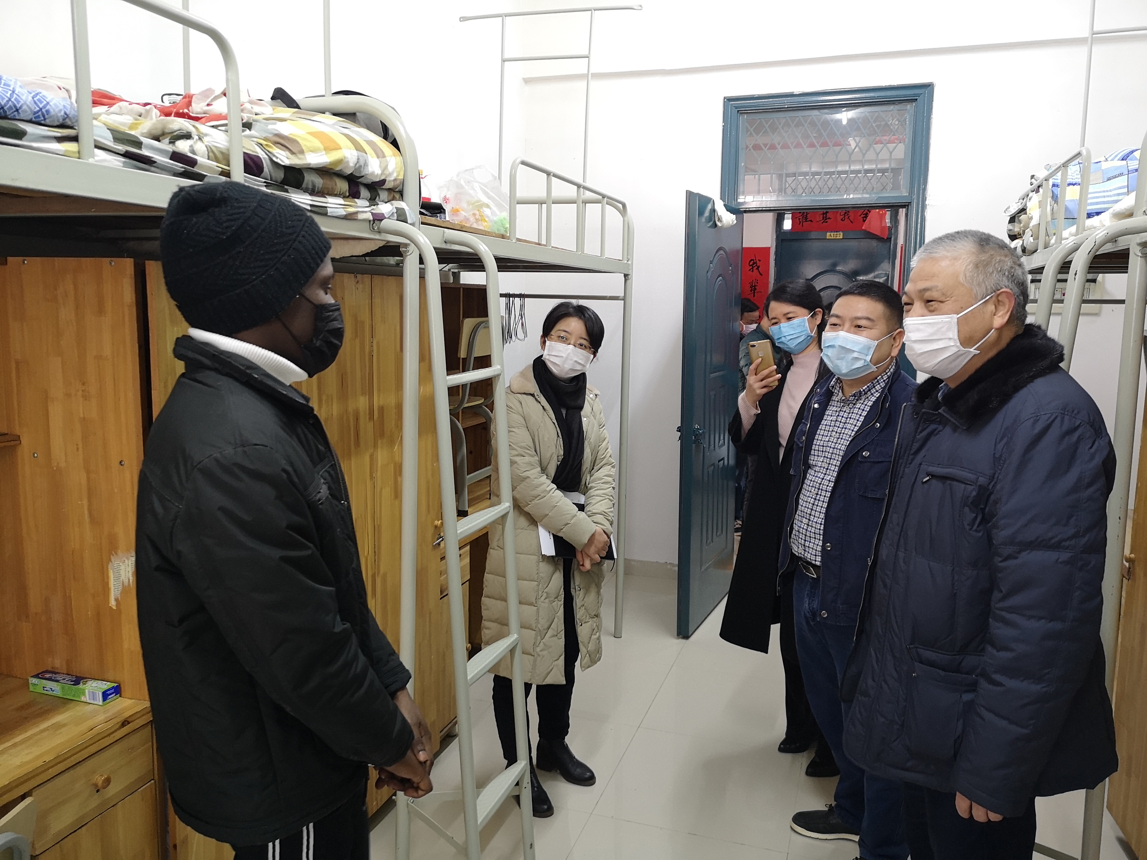 随后督查组对我校进行了现场督查,先后走访检查了学生宿舍、学校医务室、留观室、隔离区等地,并探访了留校的刚果籍留学生。