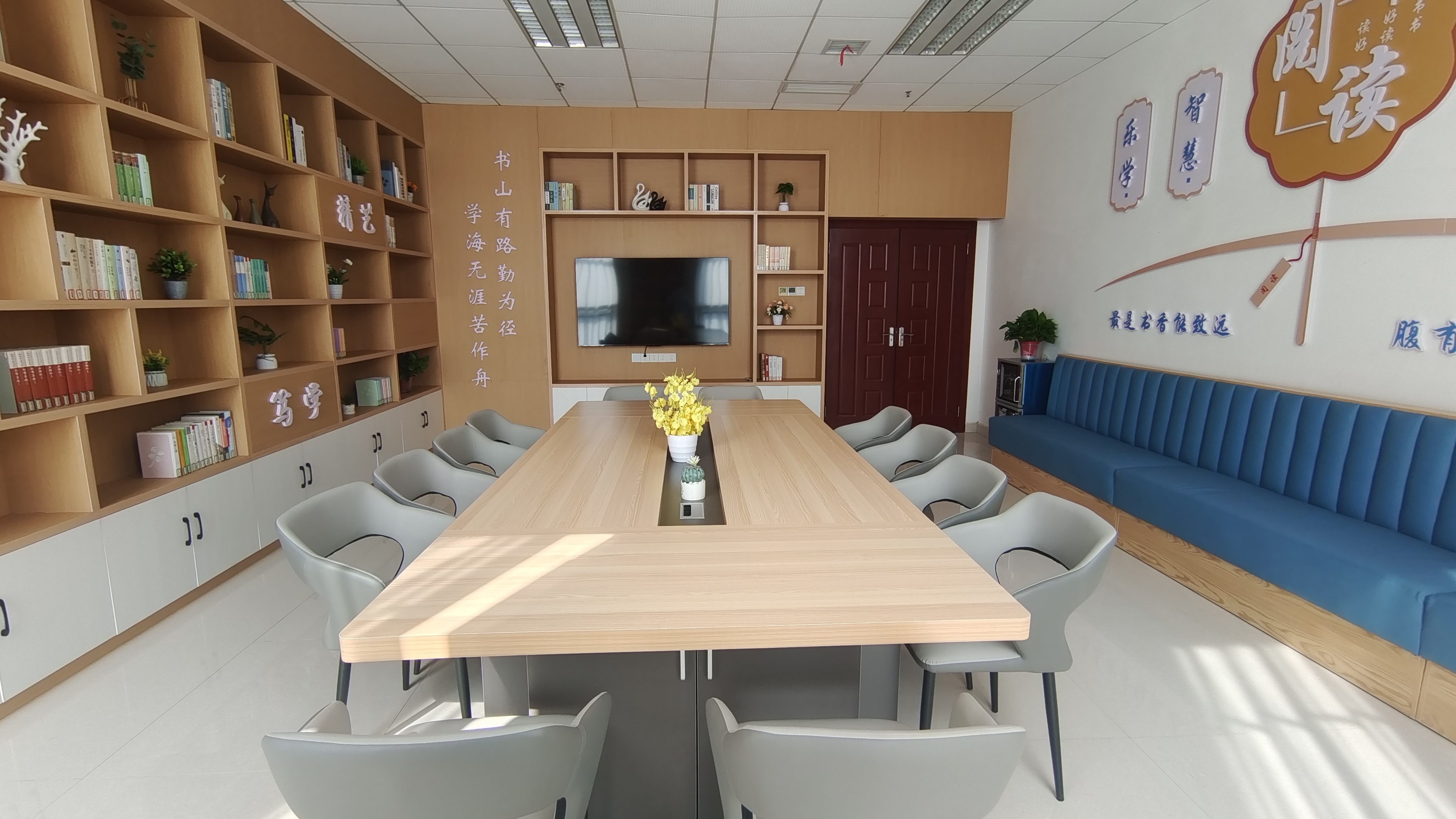 改造阅读空间。图书馆是集学习、交流、文创等多功能于一体的综合服务体,现拥有阅览座位数1000个,电子阅览室机位300个,学术报告厅席位993个。五年来,图书馆充分利用现有条件,进一步完善设施设备,优化馆内空间布局。一是改造休闲阅读区。引进自助咖啡机,增加文化氛围装饰和增加阅读休闲沙发及阅读桌椅,成为学校对外展示的重要窗口。二是建设多功能研讨室。在三楼新增多功能研讨室一间,内设智能电视机和独立WIFI,增加现磨咖啡机和消毒柜,为师生打造一个崭新的文化氛围浓厚的研讨空间。三是完成图书布局调整。为优化馆藏结构,保证新书及时上架,图书馆全体馆员战高温,加班加点完成图书下架、分类整理、书籍搬运等工作,为读者提供更加舒适合理的借阅环境。四是增添智能化设备。为打造现代化的高校图书馆,图书馆深化信息服务功能,先后引进了学术报告厅视频会议系统、电子书借阅机、电子期刊阅读机、有声太空舱、朗读亭等设备,进一步增强了阅读体验。