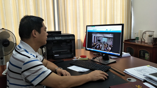 纪委书记肖耀南观看课堂直播(图/贺新元)