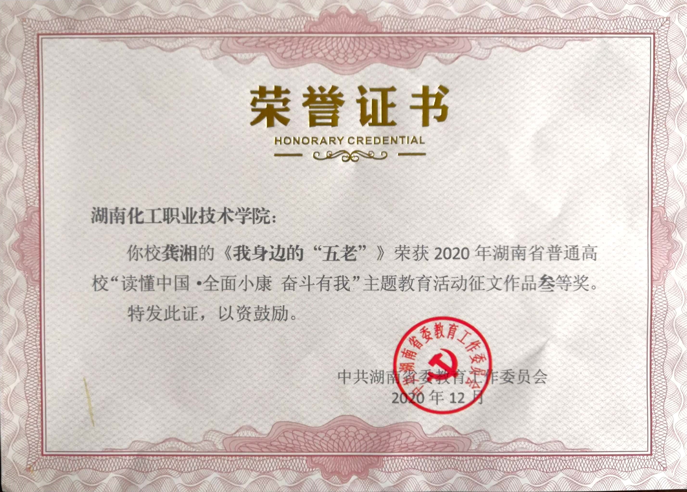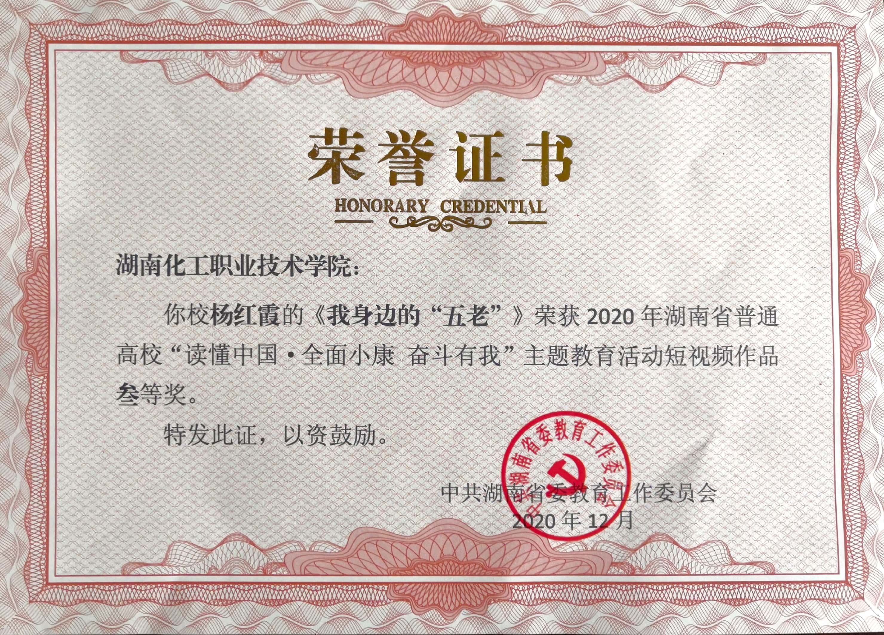 近日,湖南省委教育工委公布了2020年全省普通高?!岸炼泄敝魈饨逃疃姥〗峁?,我校荣获2020年湖南省普通高?!岸炼泄と嫘】?奋斗有我”主题教育活动优秀组织奖,离退休教育工作者杨大喜同志因作出突出贡献给予奖励慰问。此外,我校药学1914杨红霞同学的作品《我身边的“五老”》喜获短视频比赛三等奖,药学1914龚湘同学的作品《我身边的“五老”》喜获征文比赛三等奖。