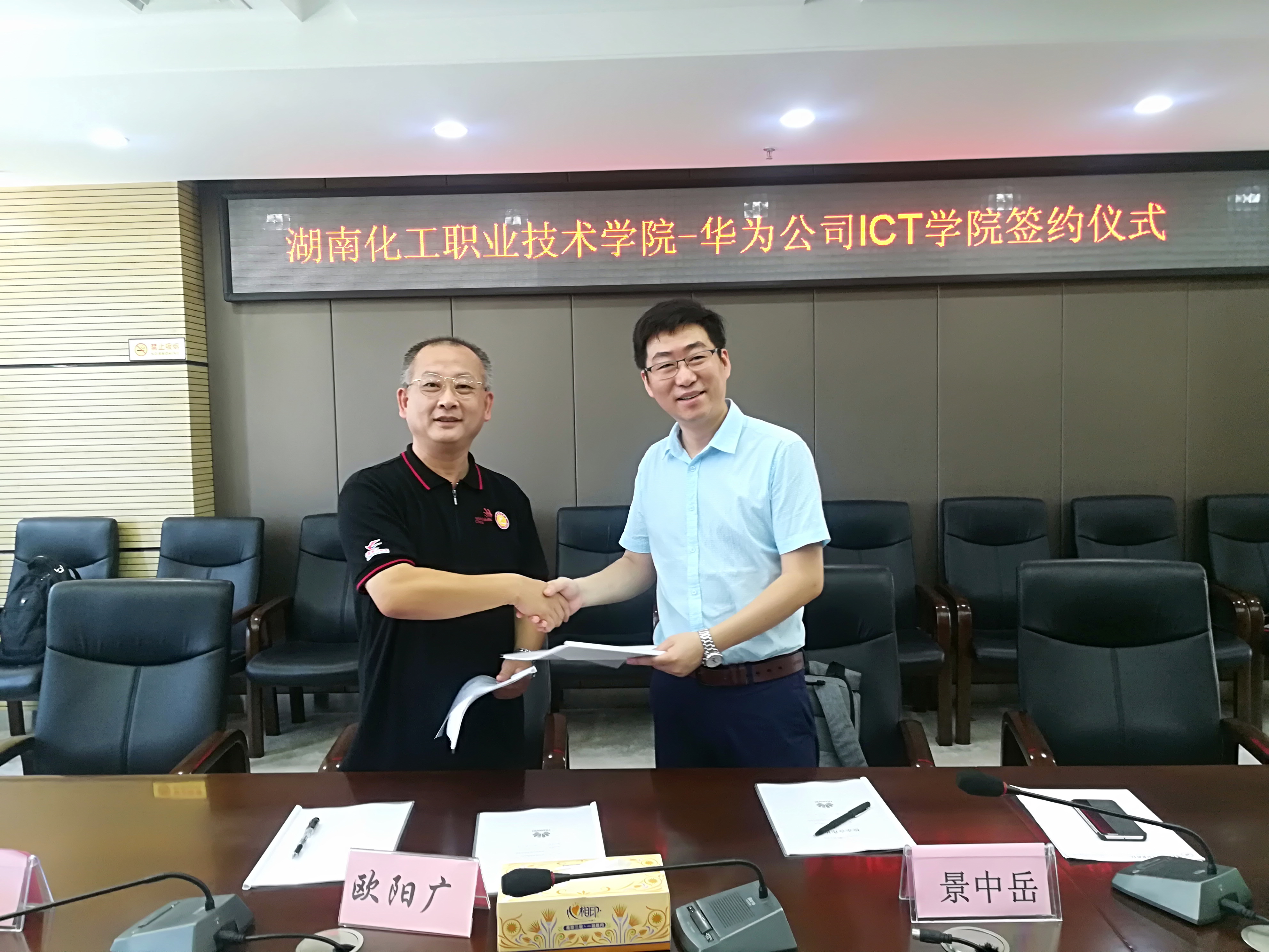 欧阳广代表学校与华为公司正式签署了校企合作协议。这一协议的签订,标志着华为信息与网络技术学院在我校自动化与信息工程学院的正式落地生根!