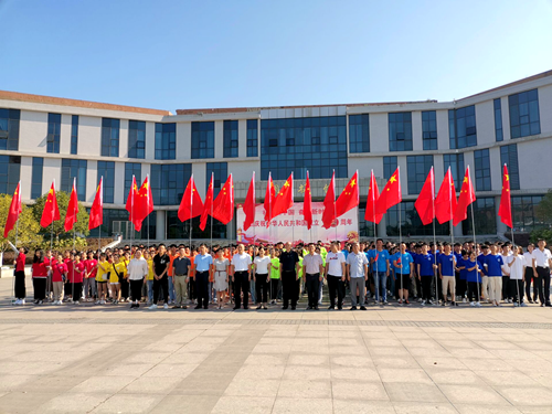 10月1日,一个阳光明媚的日子。清晨的校园,洋溢着喜庆与庄严。学工系统组织在校学生,开展了升国旗和收看庆祝新中国成立70周年大会、国庆阅兵、群众游行直播活动。校长王雄伟高度重视,和副校长隆平、胡颖蔓,以及党政办、学工部(处)、团委等职能部门领导,各二级学院党总支副书记、学工办主任等一道,全程参与国庆系列活动。