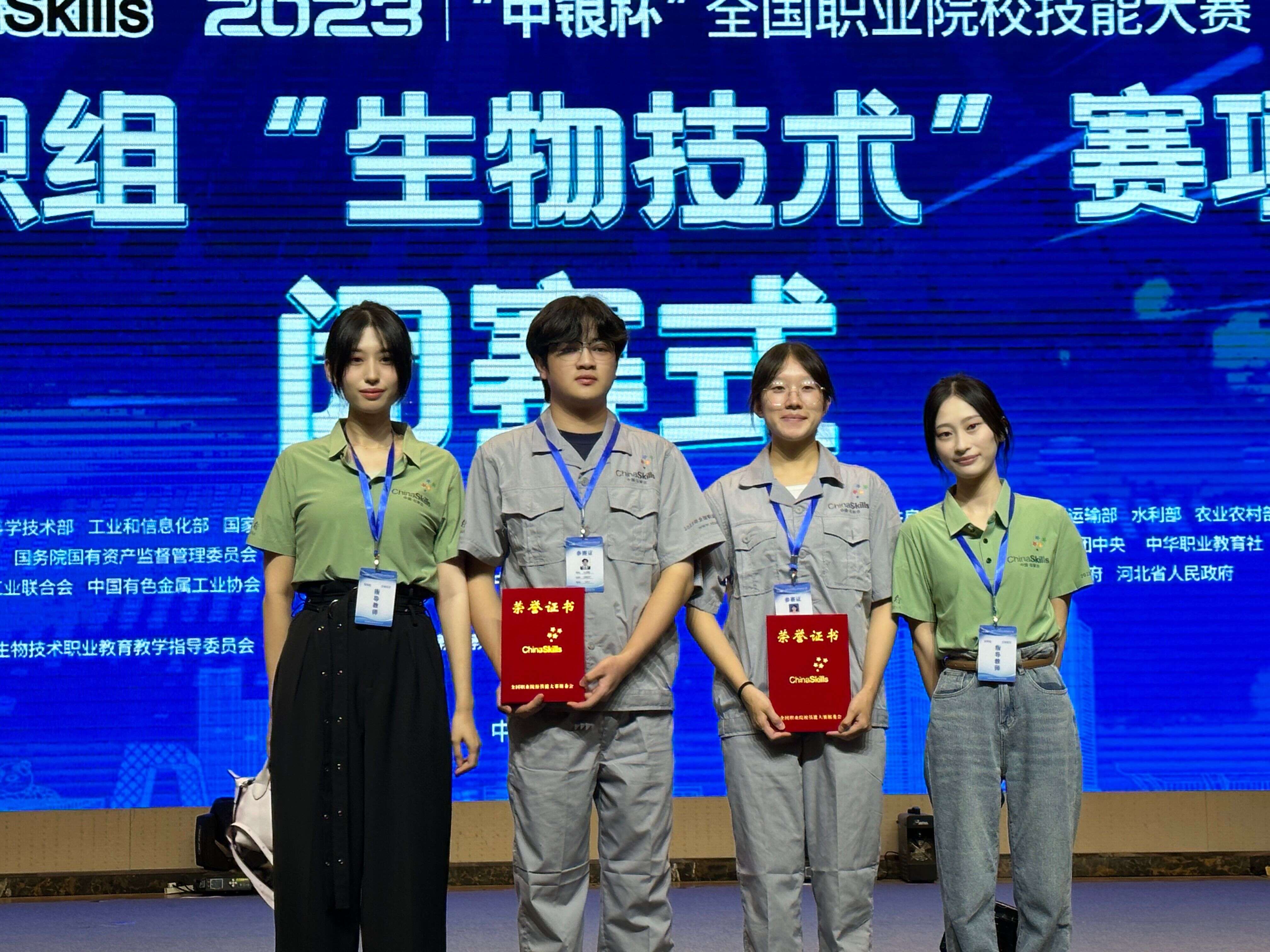 8月27日,2023年“中银杯”全国职业院校技能大赛(高职组)生物技术赛项在河北化工医药职业技术学院落下帷幕。我校制药与生物工程学院食品22102张意、食品22103孔珍荣代表学校与来自全国28个省、市、自治区的53所职业院校、106名选手同台竞技,最终荣获团体三等奖。