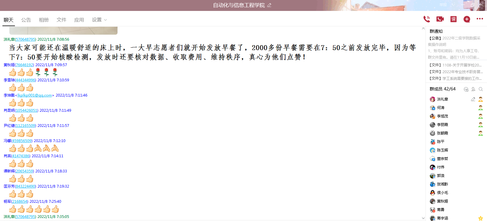 根据学校疫情防控安排,全体学生静默在宿舍开展线上学习,学校实行送餐制度,并且由各二级学院分栋进行管理。自信学院负责学生宿舍第五栋2000多名男生的管理。凌晨六点刚过,天刚微微亮,由自信学院学生组成的志愿者团队就在老师的带领下集合完毕,前往二食堂开启了早餐服务模式。领取早餐、运送早餐、发放早餐、收取费用、维护秩序……一日之计在于晨,志愿者们就是从为同学们忙碌早餐而开启了一天的志愿生活。这种温情忙碌让自信学院全体教职工都为之感动,纷纷为他们点赞!