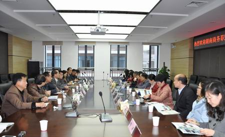 11月24日,湖南商务职业技术学院一行11人在院长孔军山带领下,来我院交流工作。交流会在新校区办公楼三楼会议室召开,学院党委书记张孝理、副院长舒均杰、院长助理王为及相关系部和职能部门负责人参加了会议。