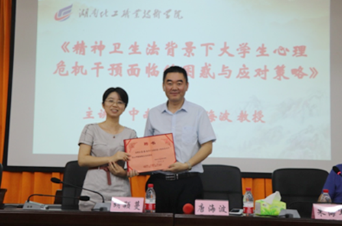 7月4日,中南大学心理健康教育与咨询专家、临床心理学博士、精神科执业医师、中国心理学会临床与咨询心理学注册心理督导师、中南大学硕士生导师唐海波研究员应邀来到湖南化工职业技术学院进行讲座。这次讲座,唐博士从解析《精神卫生法》开始,结合一个个生动鲜活的案例,进行深入剖析,同时开启互动模式,与学员现场交流探讨,答疑解惑。对于在学生工作中遇到学生心理问题不知道如何干预等方面存在困惑的辅导员和学工部门人员来说,唐博士的讲座无疑是行走在干旱沙漠之中遇到的一股清泉,也可以说是一场及时雨。新形势下的学生管理工作,面临许多新的问题,尤其是学生心理问题,既微妙细致、错综复杂,又关系重大,稍不留意就有可能酿成大错甚至触犯法律。学生工作者尤其是一线辅导员们,直接面对学生和家长,付出时间付出精力不在话下,工作压力可想而知,如果没有过硬的职业能力和必备的知识储备,工作起来不单是无所适从,如履薄冰,战战兢兢,还有可能触犯法律法规。