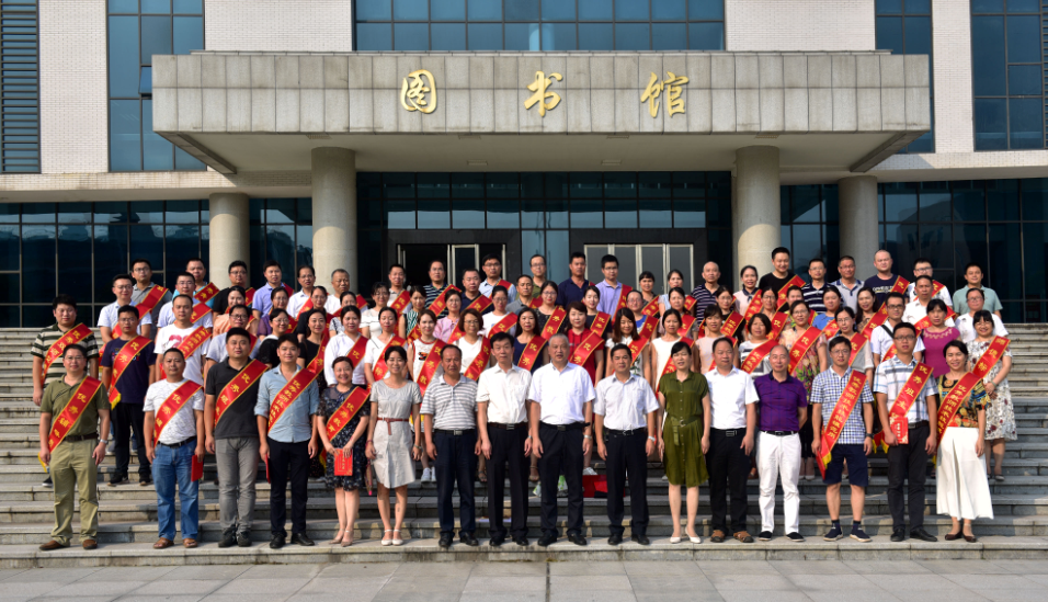 会后,学校领导与受表彰教师在图书馆前坪合影留念。