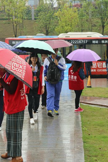 据悉,从4月9日早上7点起,各小组的志愿者们已经来到迎新地点进行布置,不一会,全部迎新队伍便已全部到齐“严阵以待”。志愿者们手持雨伞坚守在火车站、汽车站出站口接应来校考生,当考生与家长顺利到达学校后,志愿者们就在第一时间引导他们前往图书馆办理相关考试手续,并耐心接受考生与家长的咨询,直至手续办理完毕再热情带领他们参观学校宿舍、食堂、教学楼,以便考生熟悉考场环境。迎考工作如火如荼,到处都是志愿者们忙碌的身影。