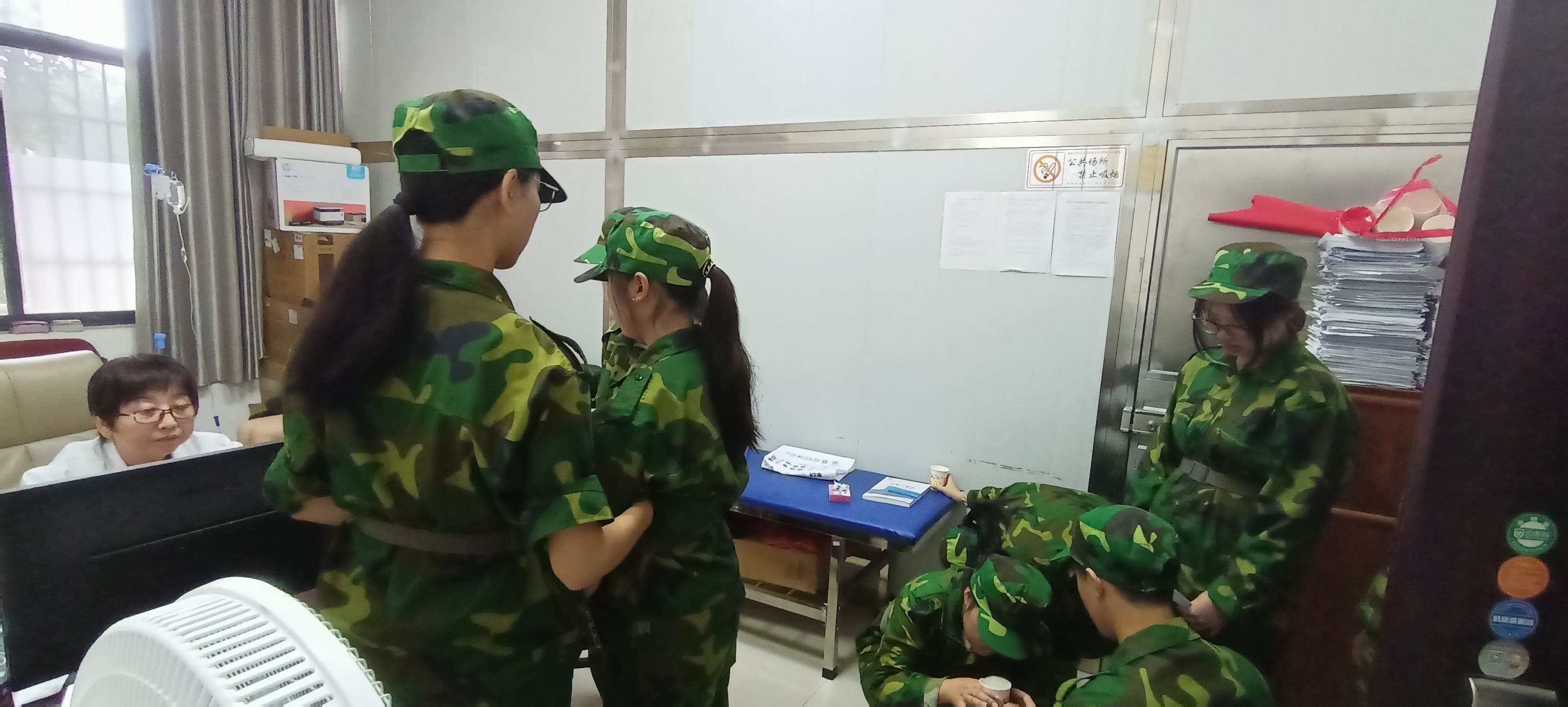 与株洲市二医院做好对接合作,在军训期间由株洲市二医院每天委派一辆救护车和两名医护人员值守田径运动场医疗点,壮大了医疗保障力量。与此同时,在图书馆前坪训练场地设置了现场医疗服务保障点,由学校医务所两名医护人员负责执勤,及时处理学生意外轻度扭(擦)伤、低血糖、痛经、中暑、肠胃不适、发热等常规不适的问题。