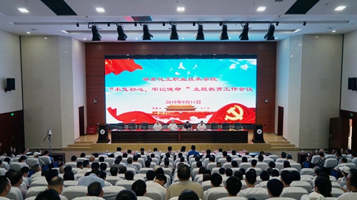 9月11日下午,学校在图书馆二楼报告厅召开“不忘初心、牢记使命”主题教育工作会议,省委巡回指导组组长朱建纲、成员卢琴、周成,株洲市委指导组组长朱庸靖、成员刘亭等出席会议,学校全体中层以上干部、全体在职教职工党员、离退休党员代表、学生党员代表等参加了会议?;嵋橛傻澄笔榧橇跻阒鞒?。