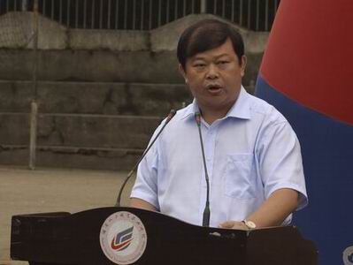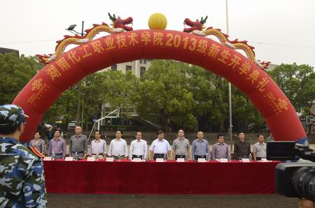 北校区:学院领导在主席台与新生们一同在激昂的国歌声中肃立