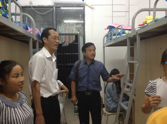 9月29日是新生正式上课的第一天,经过白天的教室巡查、访谈,初步了解了学生的精神状态。晚上,经济管理系主任郑明望、系党总支书记全国林、副主任熊美珍、党总支副书记陈宇一行又深入学生宿舍,实地查看新生经过10多天的适应后现在的具体情况,认真倾听学生的心声。