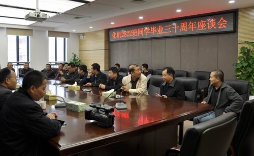 座谈会开始,王雄伟对同学们毕业三十年相聚母校表示热烈欢迎,并向学子们介绍学校近年的发展建设情况,并表示校友是学院办学过程中的一种文化品牌和历史积淀,是一种无形的资产和宝贵的财富,也是见证学院办学社会认可度和知明度的最有利依据,学院十分关注校友事业的发展,也正在搭建更好的平台,助力校友们。各位参会老师也相继发言,共同祝愿校友,并希望校友们能够常回校走动,为在校的学生开设讲座,谈论成败经历,激励在校学生认真学习,同时也希望校友们之间能够加强沟通,相互扶持,共同发展。随后,校友们纷纷发言,对学院30年的发展及成就感慨万千,满怀激情,一腔热血,三十年拼搏,不同的经历,不同生活,可不变的永远是彼此浓浓的深情及对母校深深的感恩,无论走得多远,飞得多高,学子们心中永远有一个精神的家园,那就是母校---湖南化工职业技术学院?;岷螅蠹以谘M际楣菝徘昂嫌?,祝愿友谊地久天长。