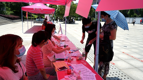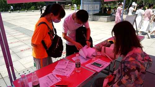 “早上6点出发,和可爱的同事一起迎接可爱的学生,太阳再晒也不怕?!蔽饩卜祭鲜κ切D诮哟榈慕淌χ驹刚?,单招这两天,早上5点多就起床了,6点准时到达自己的工作岗位。她说,接待组的老师们中午没有休息,一直工作到下午6点多,等待学生的咨询,耐心细致地反复和学生强调考试注意事项,提醒学生带好考试证件,注重安全防护,引导学生顺利参考。