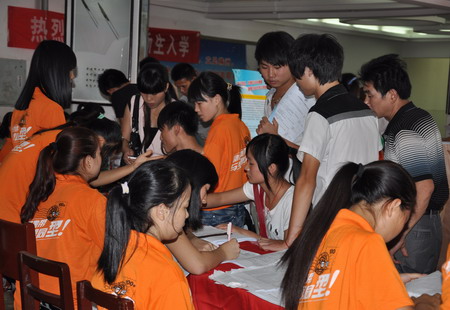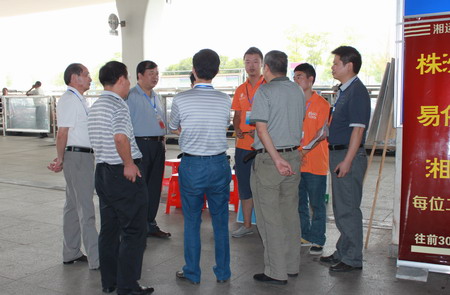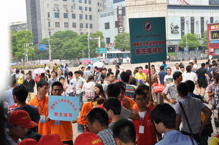 编者按: 8月31日——9月2日,是我院2013年入学新生报到的时间,9月1日上午,报道人数比较集中,但是因为事先经过了周密部署,报到现场井然有序。引导新生报到的志愿者大多是学生干部,他们身着统一的色调明快的橘黄色T恤衫,脸上洋溢着热情的笑容,每一个报到环节都有他们和迎新老师们辛勤忙碌的身影。上午10点钟左右,学院党委书记张孝理、院长刘望在分管招生工作的党委副书记王雄伟、分管保卫工作的副院长易卫国和院长助理王为一行陪同下,到火车站、高铁站、长途汽车站各迎新点检查迎新工作,并看望了校内外迎新点在炎炎烈日下辛勤工作的迎新老师和学生志愿者们,向他们表示慰问,并勉励更好地为新生和家长提供热情、周到、细致的服务。