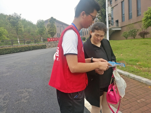 风雨里,志愿者身影随处可见。公教楼里,志愿者带领考生参观考场、侯考场,为考生加油打气;接待帐篷里,志愿者一对一和考生、家长耐心地介绍专业情况,只为送上最贴心的的帮助;升旗台处,志愿者迫不及待地上前去迎接每一位考生。校外志愿者主动询问、关心考生安全、住宿情况,提醒考生注意人身、财产安全。