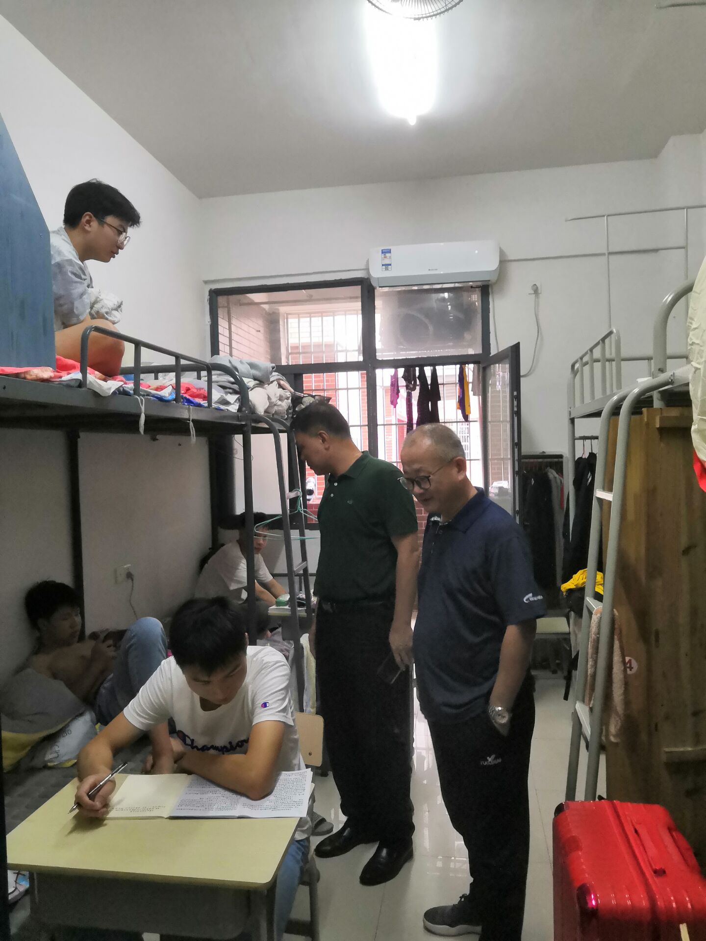 9月6日,正值学生报到之际,院长、书记带领辅导员老师们,深入宿舍看望返校的同学们,详细询问同学们返校后的生活学习情况,“同学们是从哪里回来的?”“路上的防护措施是怎么做的?”“回到学校有没有什么不方便?”,并对大家普遍关心的食堂就餐、寝室网络、宿舍调整等问题一一作了解答。同学们对学校的疫情防控和开学准备表示满意,称细致贴心的安排、热情洋溢的老师都让他们安心、舒心、放心。