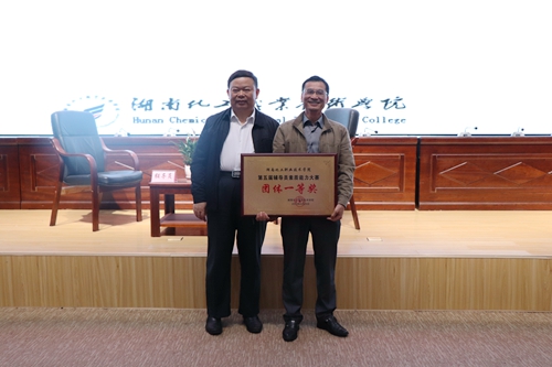 4月26日下午,在图书馆二楼大报告厅,我校举办2018年辅导员素质能力大赛现场决赛,学校党委书记刘望教授到场讲话并为获得团体一等奖的单位和获得决赛特等奖的个人颁奖。副校长童孟良、胡颖蔓,学工部(处)处长朱海军、人事处处长刘艳、招生就业处处长汪发亮、制药学院党总支书记王继山、商学院党总支书记全国林、机电学院党总支书记谭海林和化工学院副院长唐淑贞、自信学院副院长李丽霞应邀担任大赛评委。全校辅导员、部分班主任和学生代表300余人到大赛现场观摩。经过激烈角逐,机电工程学院荣获团体一等奖,制药与生物工程学院荣获团体二等奖,商学院获得优秀组织奖。苏敏荣获个人特等奖;龙琳、李媛荣获个人一等奖;刘丙肖、郭浪、袁华荣获个人二等奖;唐恬恬、刘志勇、兰兰、尹琦、张朝霞、付伟、冯灿、李建伟、单卫国荣获三等奖。