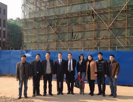 12月4日,德国BSK国际教育机构执行总裁凯尔·费德勒(Kai-A. Fiedler)博士,驻华代表陈钢先生一行参观我院新校区建设工地。学院领导石绍军、刘毅,人事处、党政办、基建处等部门领导陪同参观。