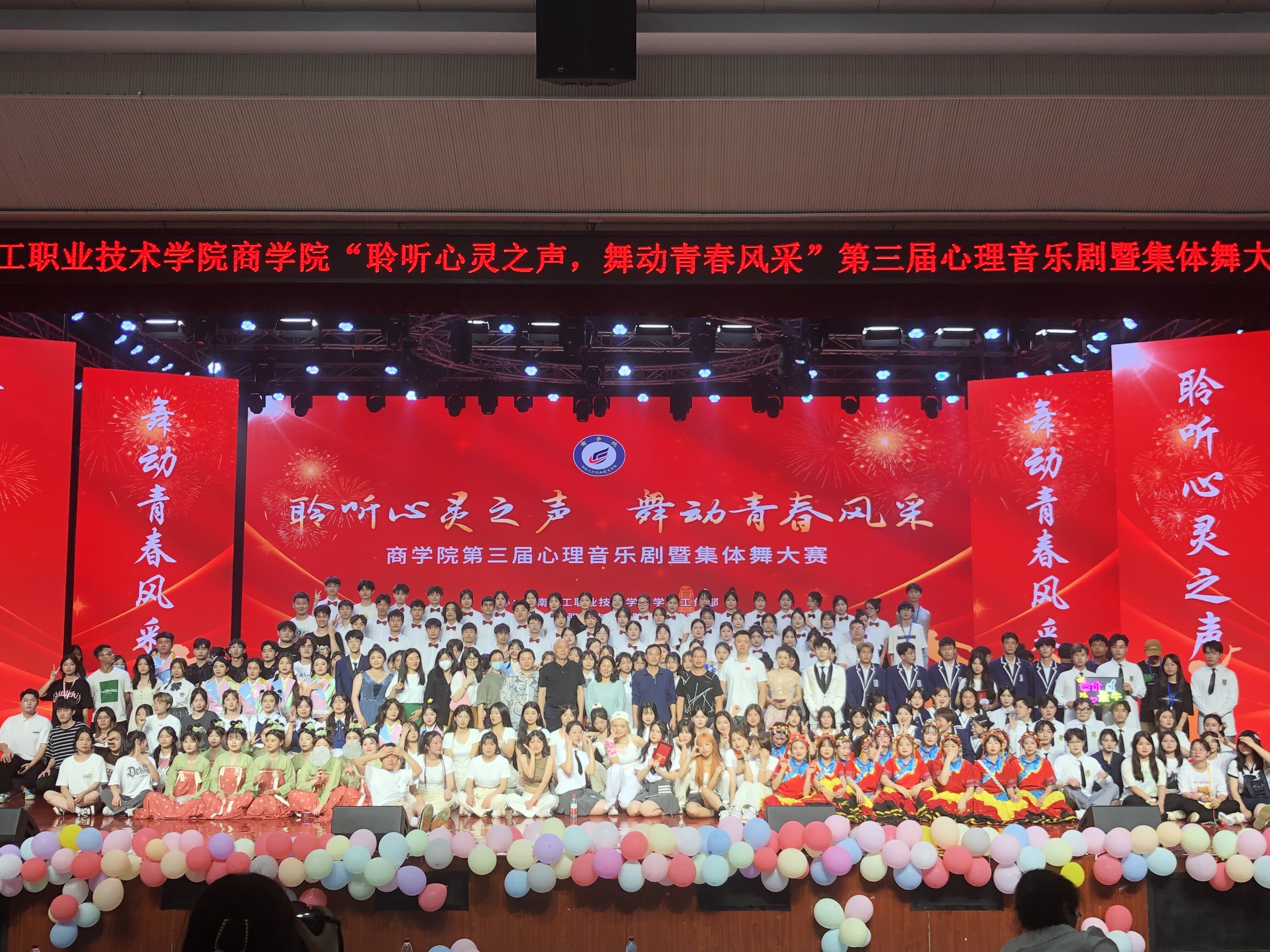 5月18日晚7点,商学院第三届心理音乐剧暨集体舞大赛在学校大礼堂举行。学校副校长刘艳、学工处处长朱海军、商学院党总支书记全国林、学校团委副书记苏敏、商学院党总支副书记袁华莅临活动现场并担任评委。