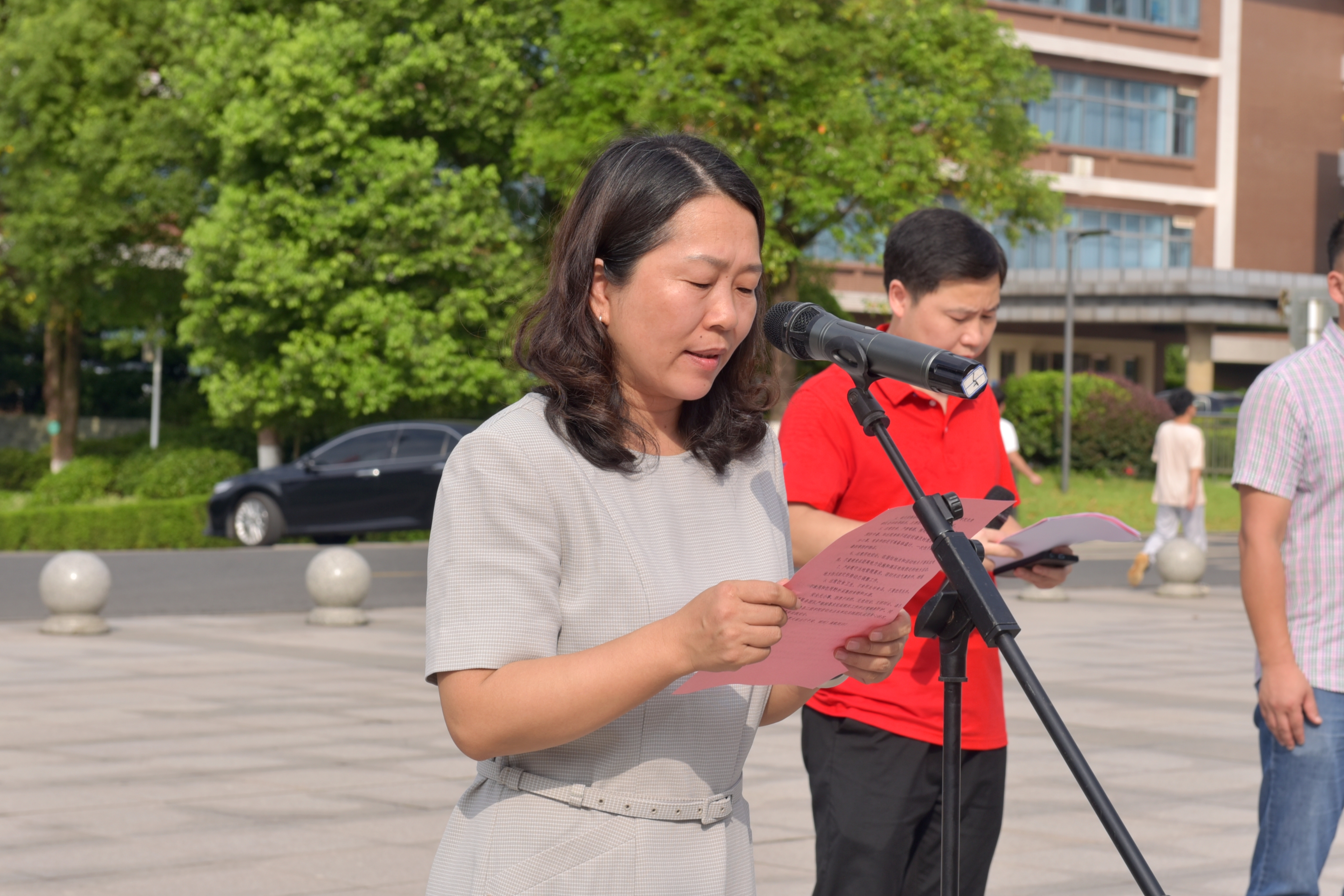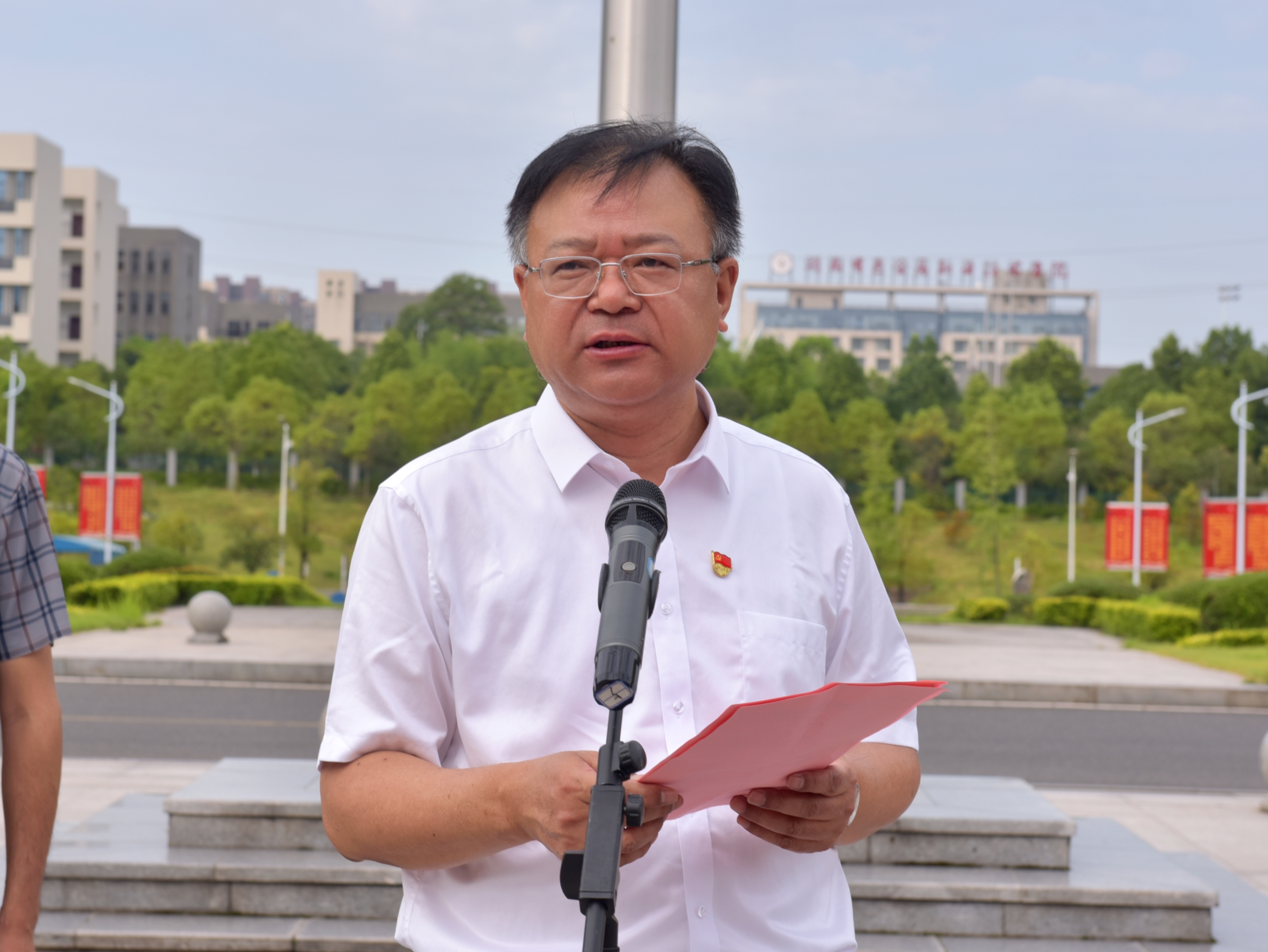 我校于7月5日早上8:00在图书馆前坪举行了2023年暑期“三下乡”社会实践活动出征仪式,学校党委书记陈超、副校长刘艳,各二级学院党总支书记、副书记、辅导员,学校团委、学工等相关职能部门负责人和全体学生志愿者参加仪式。