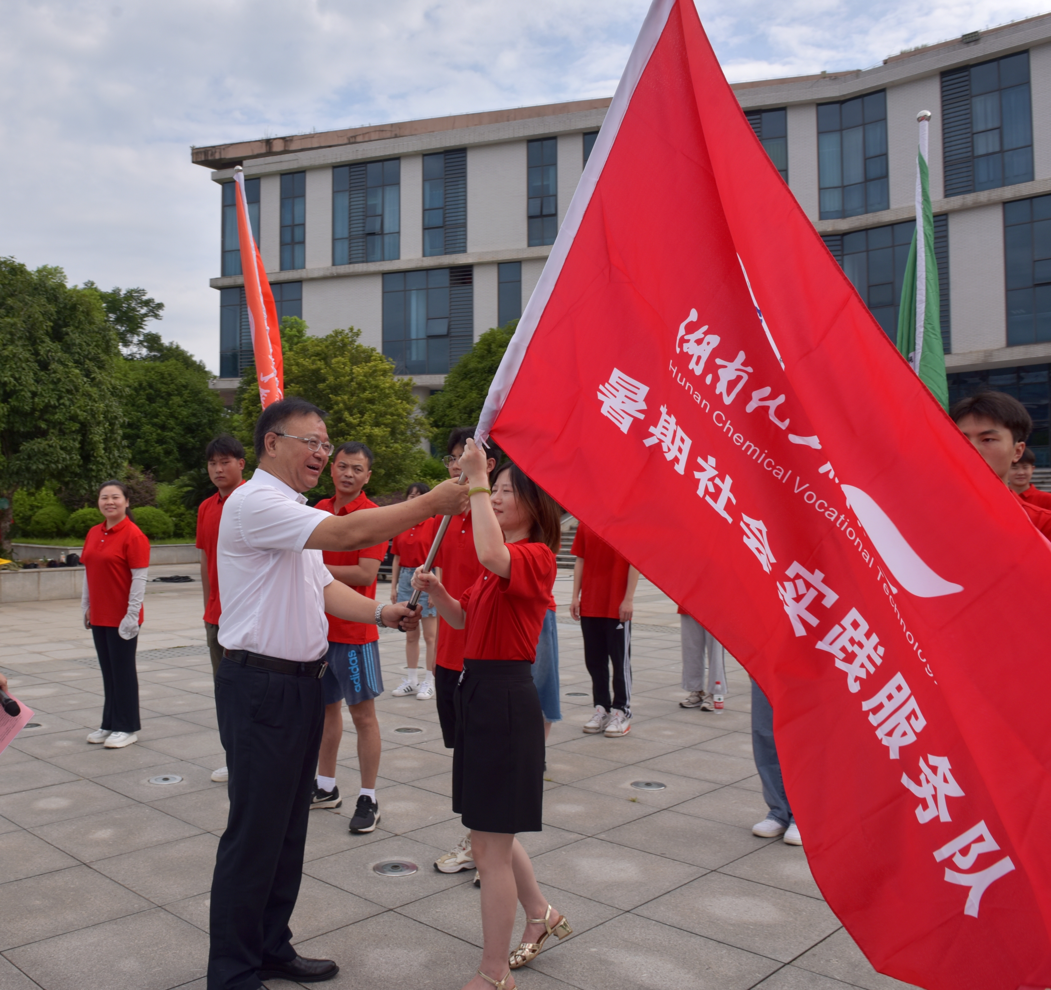 最后,陈超向“三下乡”代表队进行授旗,并宣布队伍出征。