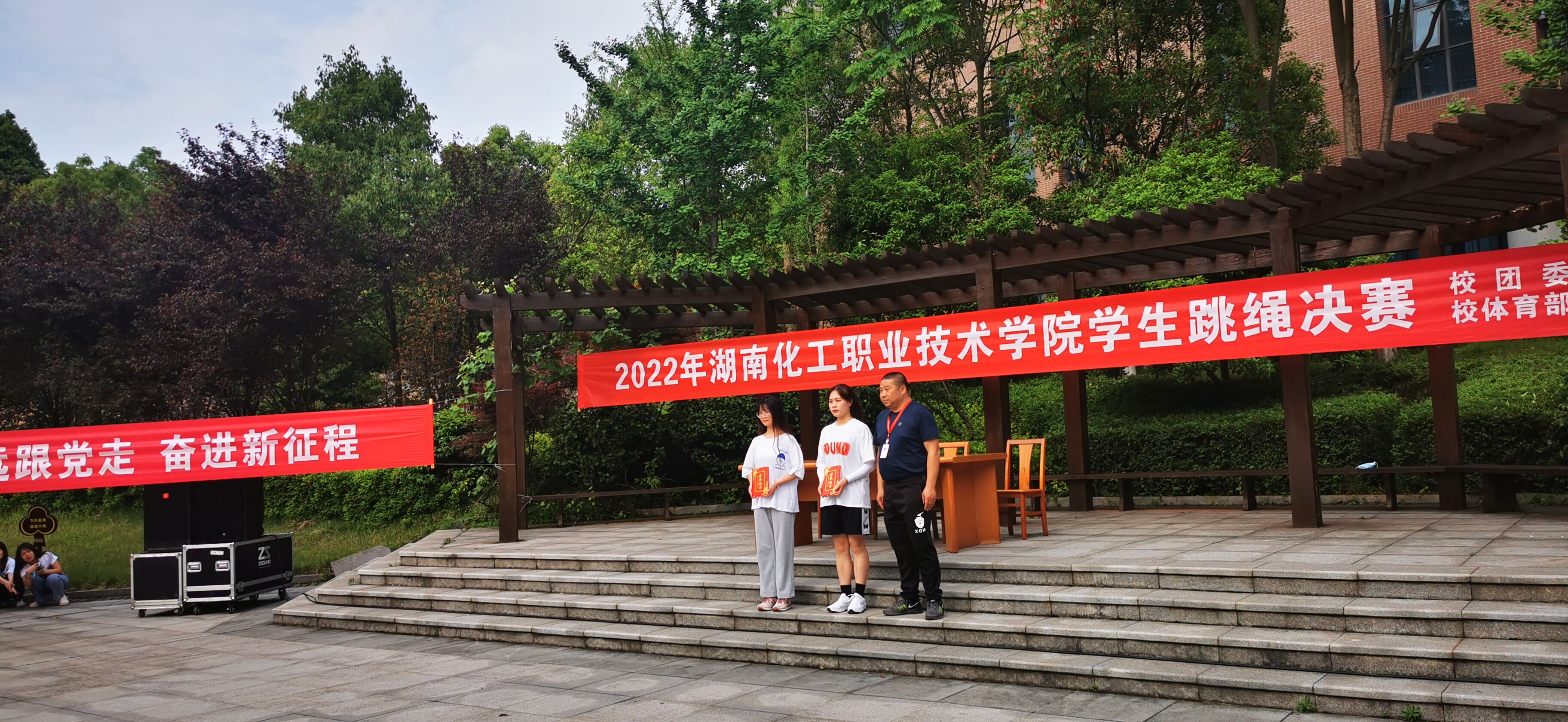 为了丰富同学们的课余生活,提高同学们的身体素质,增进同学们之间的友谊,4月26日,由校体育部与校团委共同组织的2022年湖南化工职业技术学院学生跳绳决赛顺利举行。校体委主任、副校长隆平,校体委副主任、副校长胡颖蔓,校团委书记刘其琛、校体育部部长徐国武以及各二级学院党总支副书记出席,近400名运动员参加。