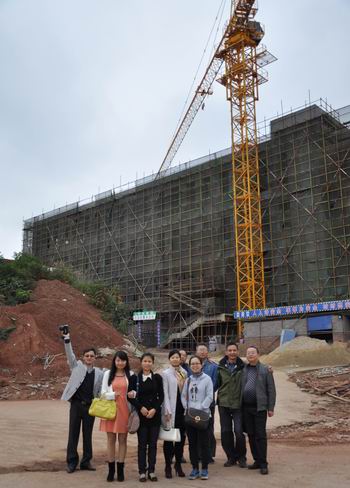 参加统战工作会议的部分代表在新校区在建项目前欣然留影