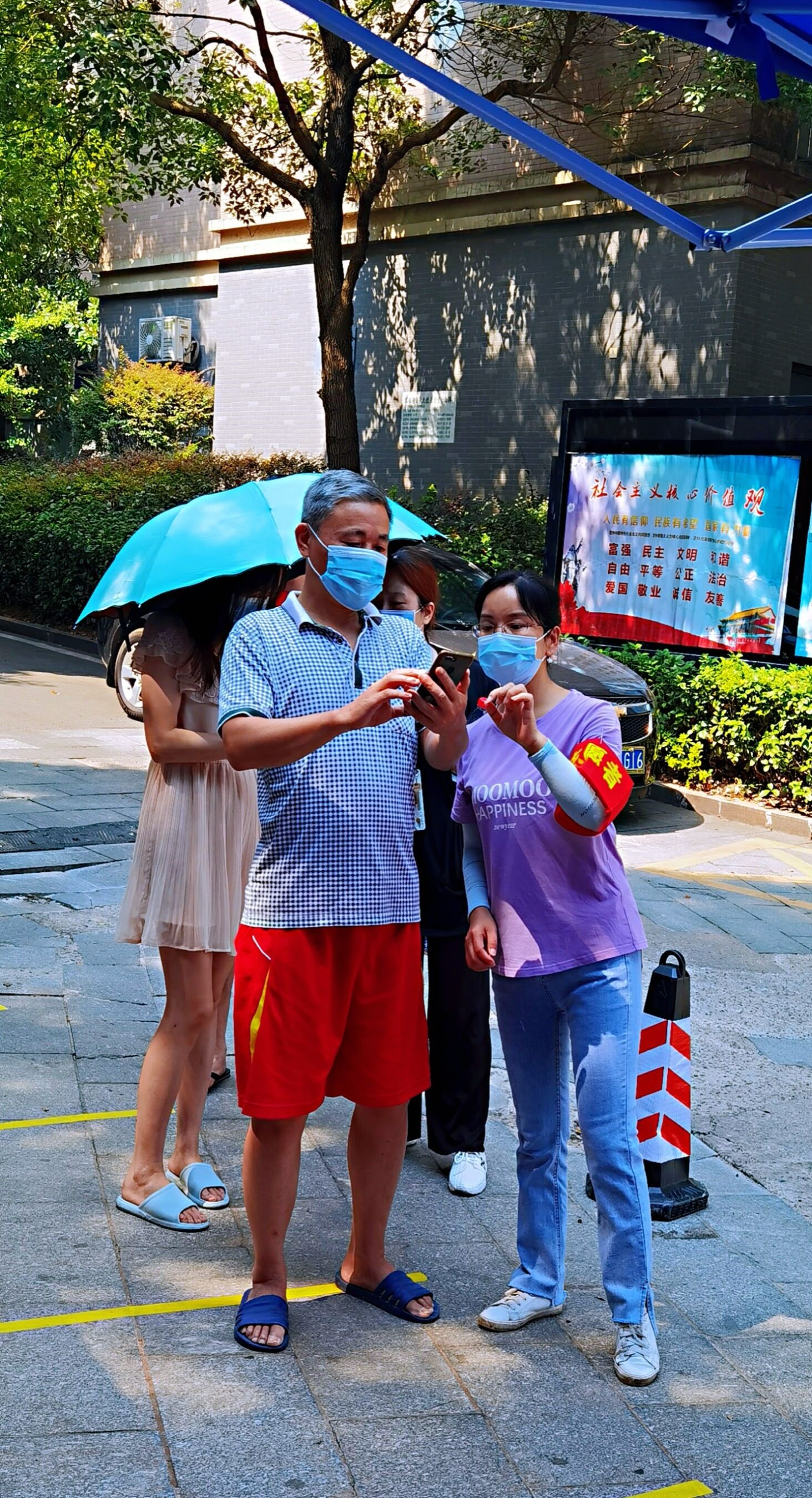 8月9日一大清早,在株洲嵩山路街道香山社区第二轮核酸检测现场传来一声声清脆而响亮的声音,“请大家提前打开健康码和行程码,准备好身份证,保持一米距离排队。”“请大家不要着急,我们检测采样非??斓?,不会耽误太长时间的。”“请您戴好口罩,这样才能保护好自己。”检测现场,作为志愿者的熊美珍老师,积极引导着居民有序排队、准确填写信息。社区老人比较多,每当看见腿脚不利索的老人和对智能手机使用不太熟练的老人时,熊美珍老师都会主动上前帮助,耐心而细致地帮助老人解决困难,让他们安全、安心地接受采样检测。