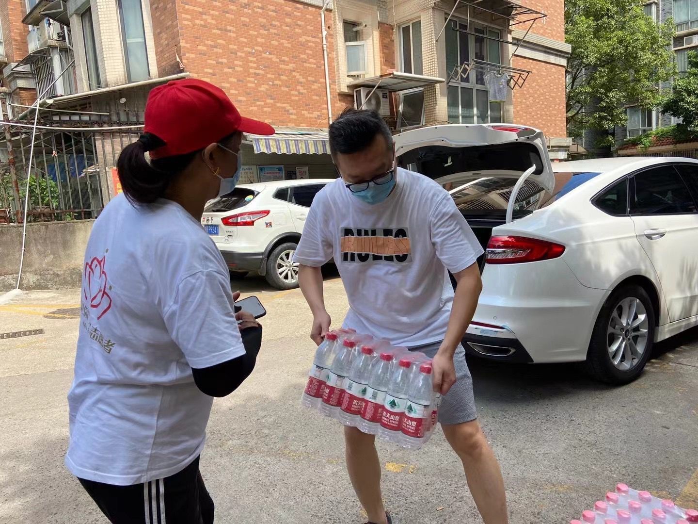 费诚老师不光自己成为一名小区的抗疫志愿者,他还通过所居住的小区微信群等多种渠道组织小区业主积极为小区抗疫辛勤付出的志愿者们和物业工作人员捐款。在他的组织和号召下,文化路海德堡一期小区共捐款800多元用于为志愿者服务。捐款后的第二天,他就带领业主代表们将矿泉水、牛奶、王老吉凉茶和西瓜等物资送给了正在小区岗亭辛勤工作的志愿者们和物业工作人员,给他们送去了一丝清凉,表达了全体业主对他们无私奉献的感恩之心。他暖心地说:“只有这些工作人员平安健康了,才能更好守护人民群众的健康屏障?!?/span>